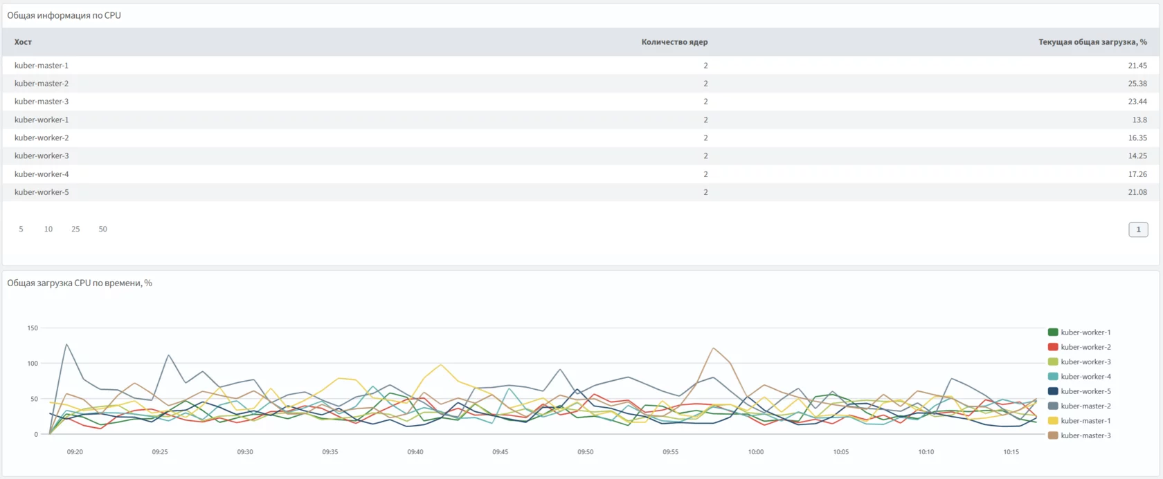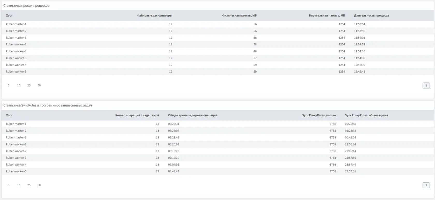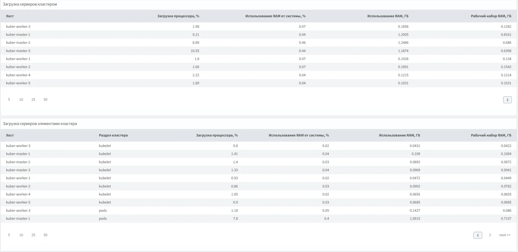 Использование ресурсов основными компонентами кластера Kubernetes.