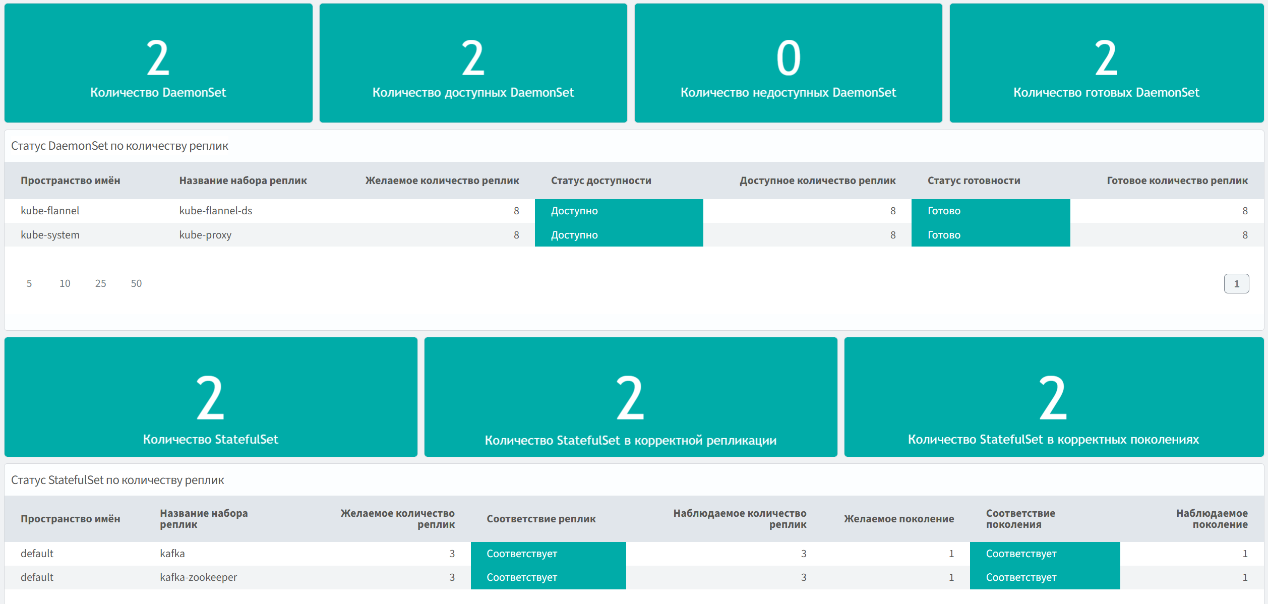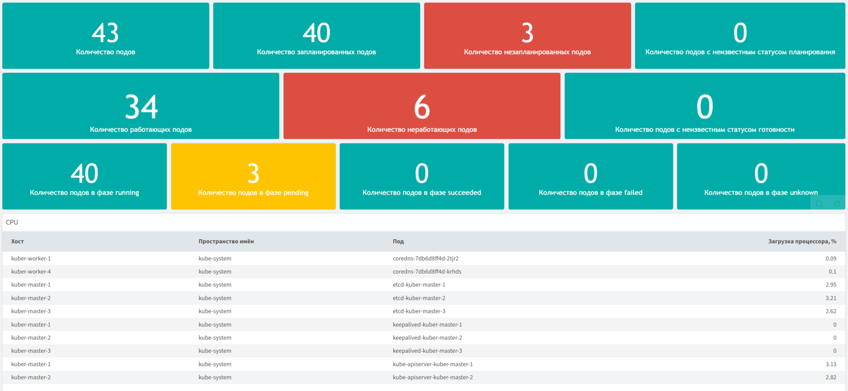 Отслеживание различных параметров подов, в том числе их фаз, состояний и статусов.