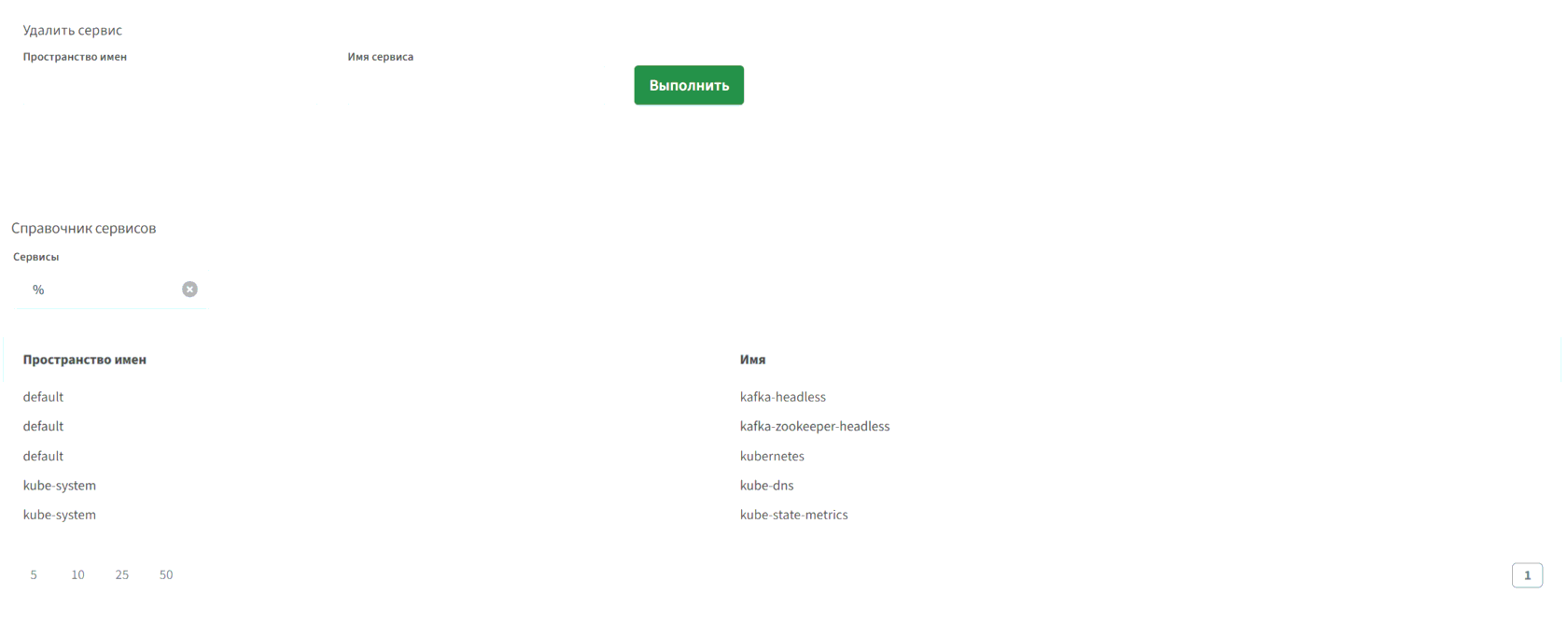 Удаление пространства имён, подов, сервисов и развёртываний.