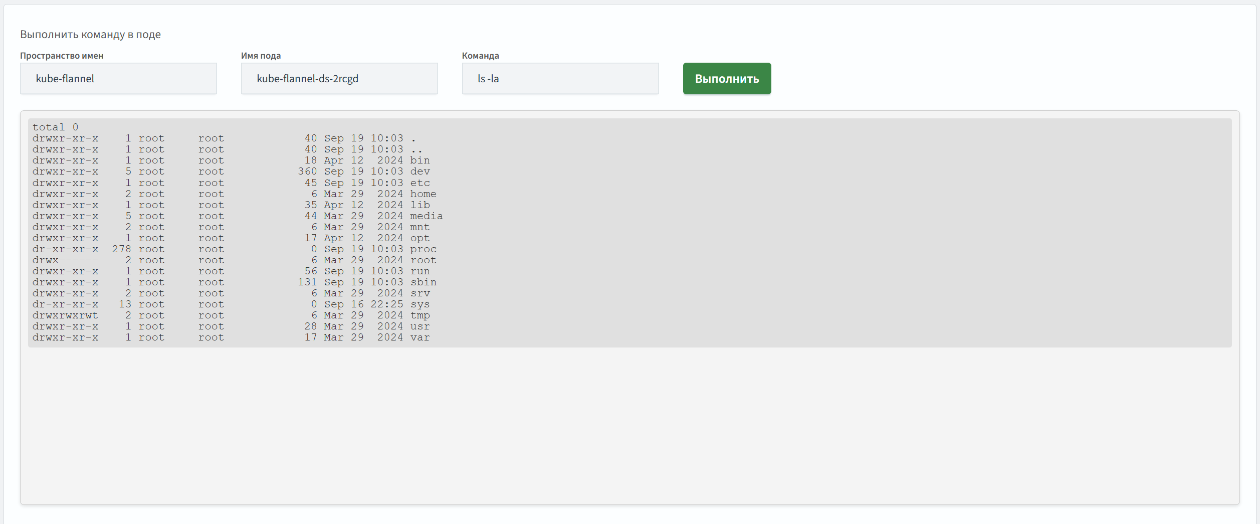 Выполнение команд в подах