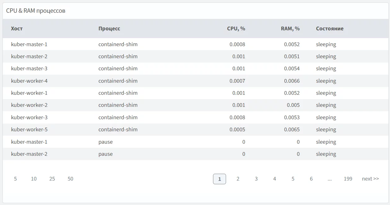 Позволяет получать информацию о состоянии CPU, RAM, дискового ввода-вывода, файловой системы, потоков данных, процессов на серверах с Kubernetes.