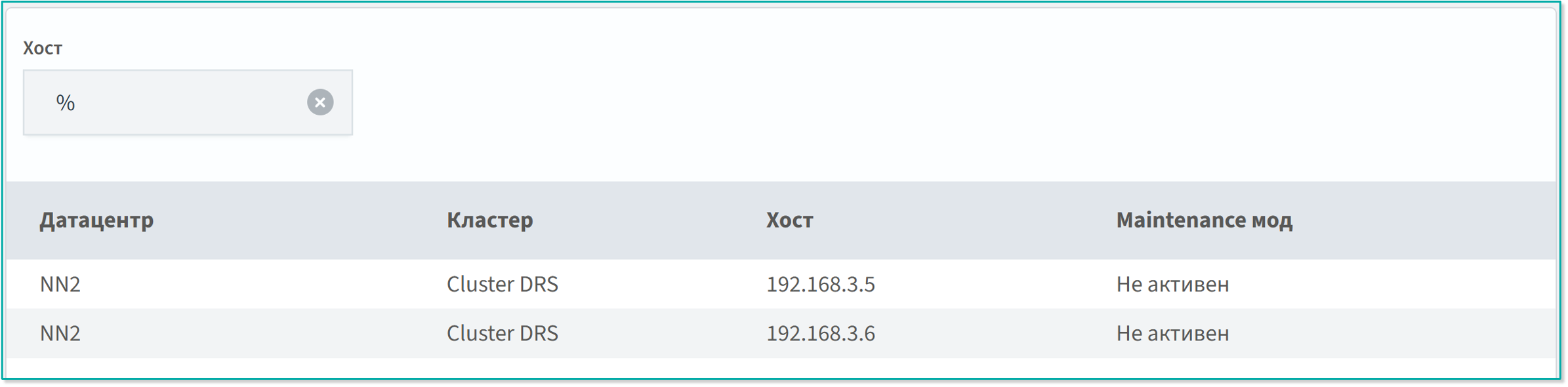Доступна возможность включения и выключения ESXi-хоста, а также реализовано переведение в maintaince-режим. Предоставлен справочник по ESXi-хостам.