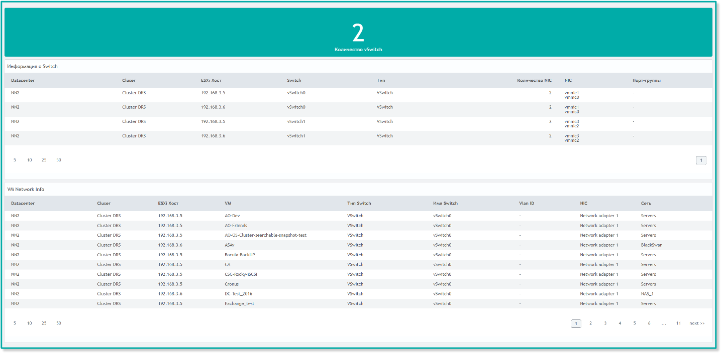 Позволяет получить информацию о VSwitch или VDSwitch, такую как данные о виртуальных сетевых интерфейсах и портовых группах.